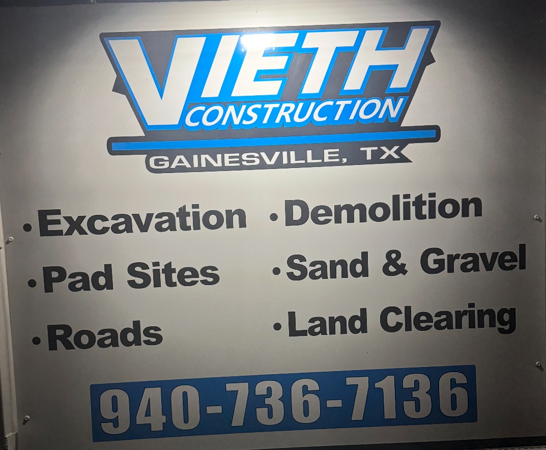 Vieth Construction is a locally owned and family-operated company built on hard work, honesty, and dependable results in the Cooke County area. We specialize in excavation and site preparation services for residential and commercial projects. Our experienced crew and modern equipment allow us to complete projects efficiently while maintaining a strong focus on safety and quality. From start to finish, we take pride in delivering work you can trust.